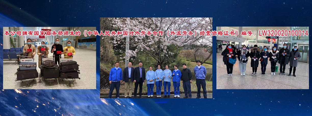 是從事對(duì)外勞務(wù)合作的專業(yè)性公司,本公司擁有國(guó)家商務(wù)部頒發(fā)的《中華人民共和國(guó)對(duì)外勞務(wù)合作(外派勞務(wù))經(jīng)營(yíng)資格證書》編號(hào):LW320020100014。從一九九五年開展勞務(wù)合作以來,積極開拓進(jìn)取,先后向日本、加拿大、新加坡、韓國(guó)等國(guó)家派遣勞務(wù)人員近1萬(wàn)5千余人。勞務(wù)合作行業(yè)主要有服裝(車工、裁剪、整燙、制板、維修、車間管理)、針織業(yè)(織布、漂染、針織、橫機(jī)、套口羊毛衫工)、建筑工程(技術(shù)人員、瓦工、鋼筋工、拌灰工、木工、油漆工、電工、鋁合金工、水暖工等)、機(jī)械工(銑床、車床、沖床、鉆床、鑄造等)電焊工(壓力容器、亞弧焊、建筑設(shè)備安裝、船舶、管道工)、遠(yuǎn)洋捕撈(職務(wù)船員、普通漁工、水手),高級(jí)廚師(川菜、粵菜、京菜、淮揚(yáng)菜)、電子裝配、園藝、蔬菜種植、桑蠶飼養(yǎng)、海、淡水養(yǎng)殖、護(hù)士、翻譯(英語(yǔ)、日語(yǔ)、韓國(guó))等,日本辦事處設(shè)在日本東京、廣島主要負(fù)責(zé)管理和服務(wù)日本研修生及貿(mào)易方面的聯(lián)絡(luò)工作,國(guó)外辦事處和中國(guó)公司現(xiàn)有工作人員25人,專職勞務(wù)工作人員10人,從事勞務(wù)行業(yè)均10年以上,翻譯、培訓(xùn)教師5人,外教2人,會(huì)計(jì)3人,業(yè)務(wù)人員5人。